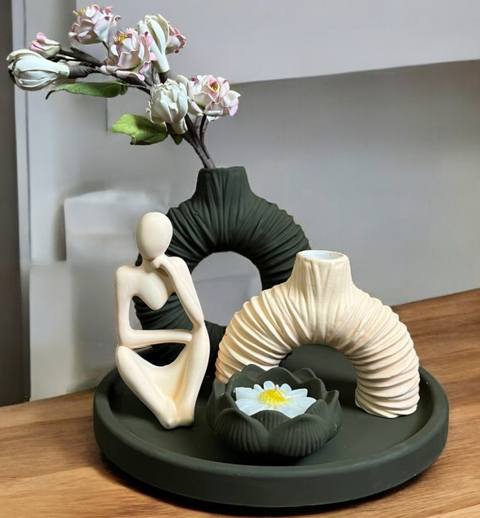 دکوری ۵ تیک شامل ست دونات چروک استند شات شمع مجسمه متفکر مناسب برای دکوری رومیزی محل کار هدیه و...