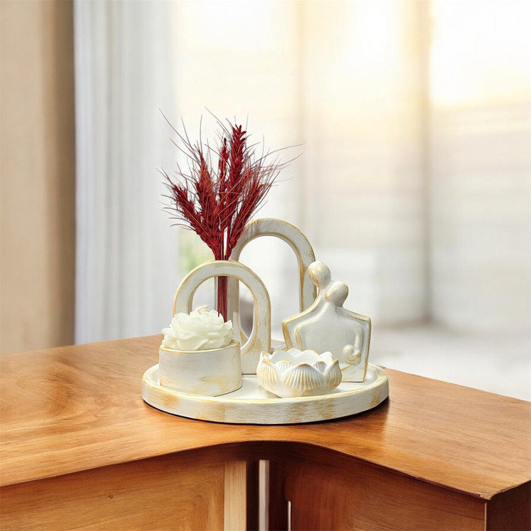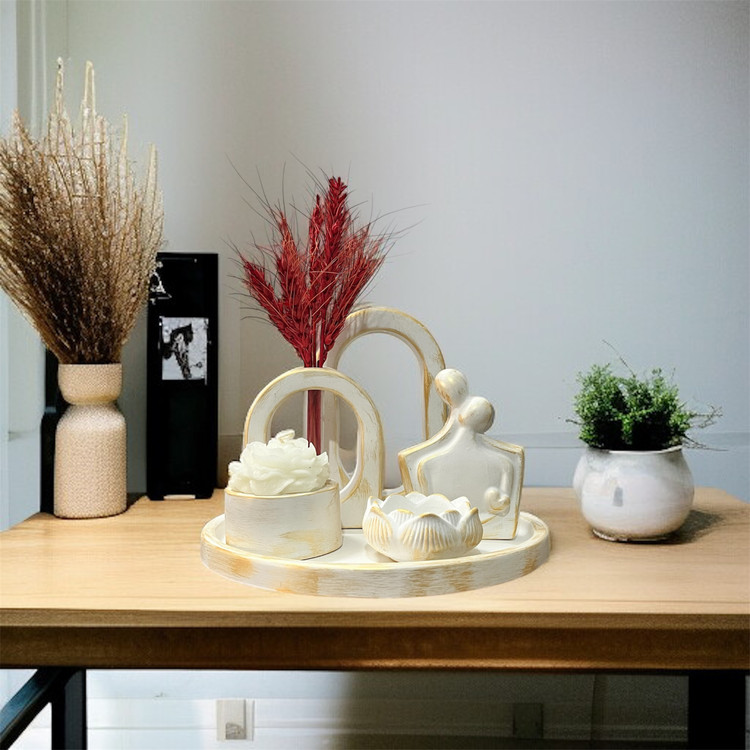 دکوری ۶ تیکه شامل ست گلجا استندگرد شات شمع مجسمه زوج شات.